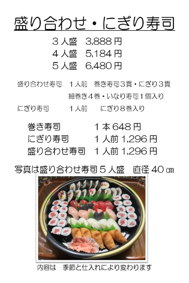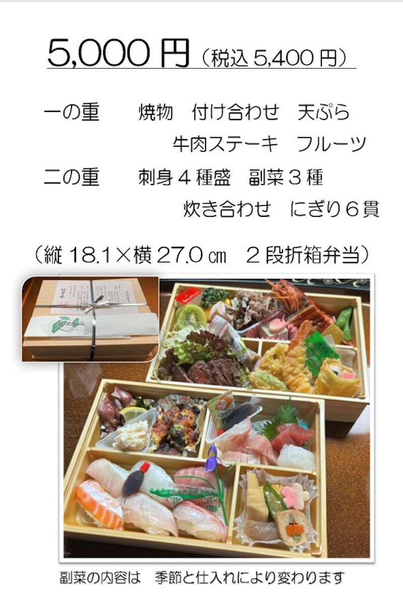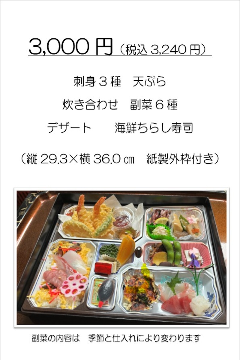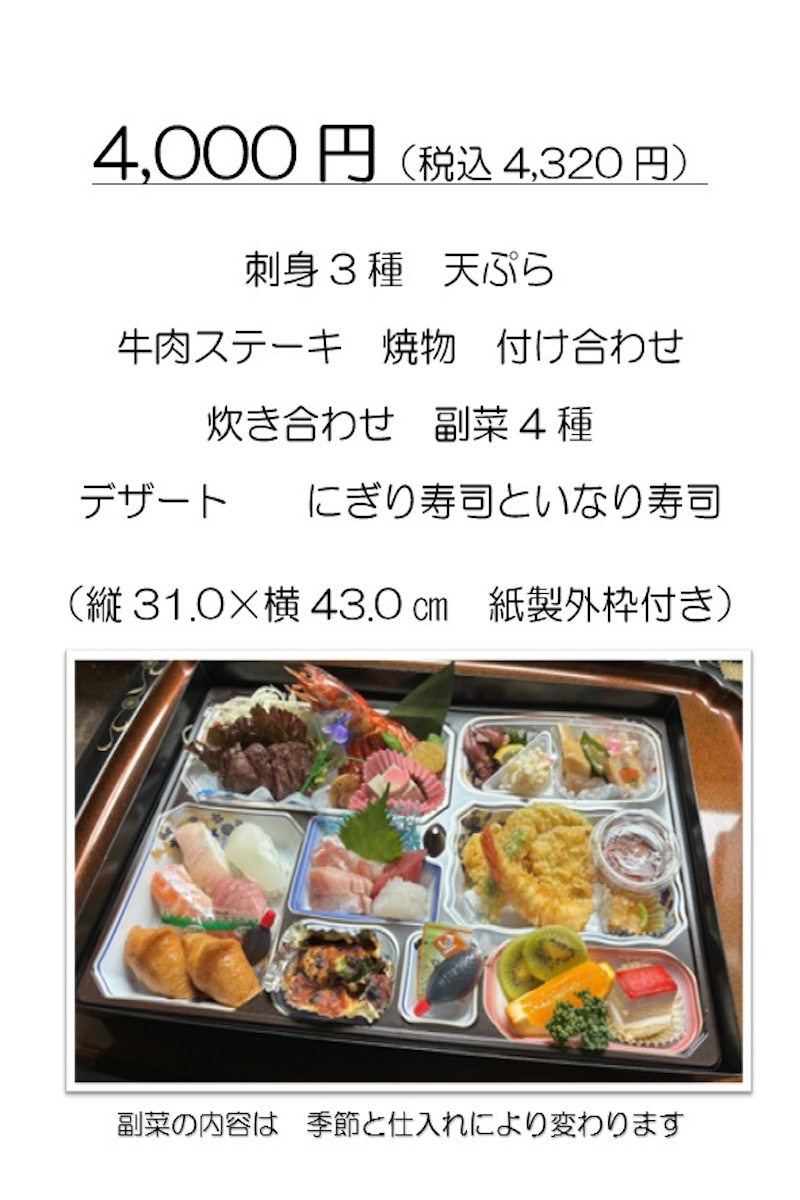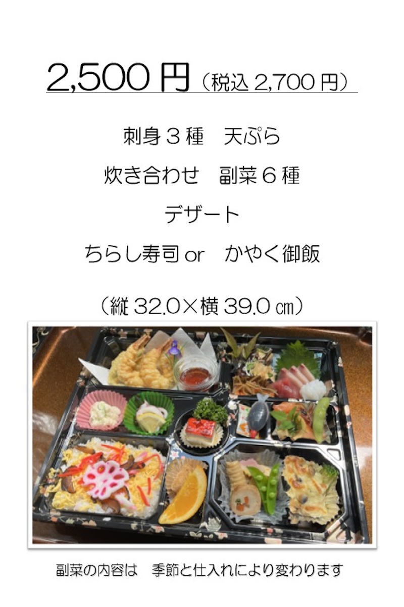 お弁当のご注文は、お電話にて夜久野店へお願いいたします。